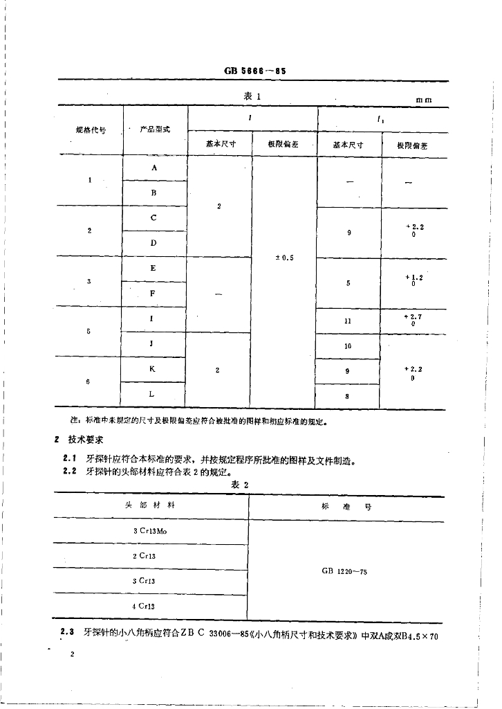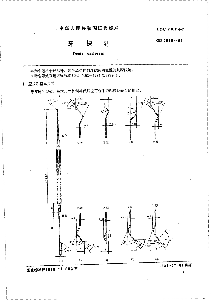 YY 91014-1999 牙探针