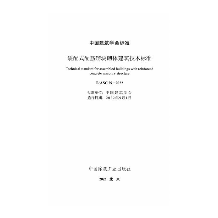 T/ASC 29-2022 装配式配筋砌块砌体建筑技术标准