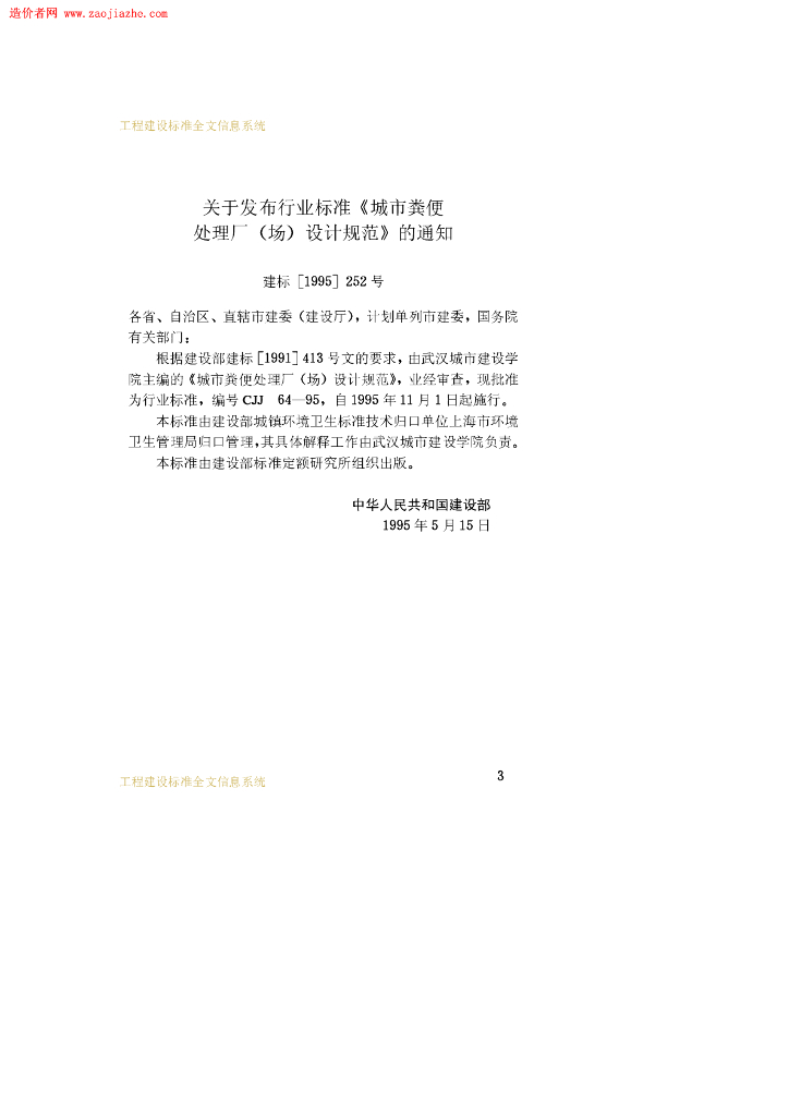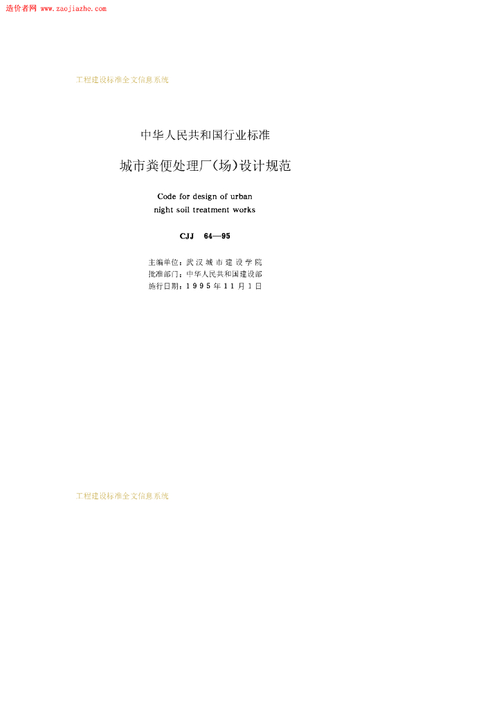 CJJ 64-1995 城市粪便处理厂(场)设计规范