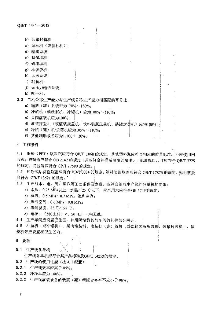 QB/T 4441-2012 含果肉饮料二次灌装生产线