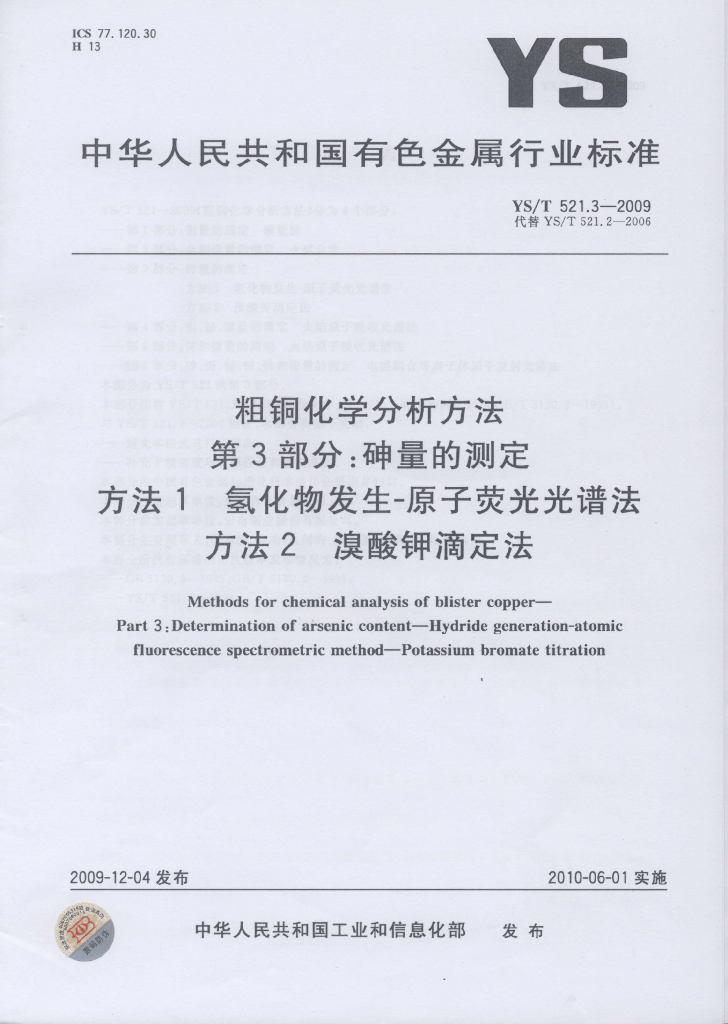 YS/T 521.3-2009 粗铜化学分析方法 第3部分:砷量的测定