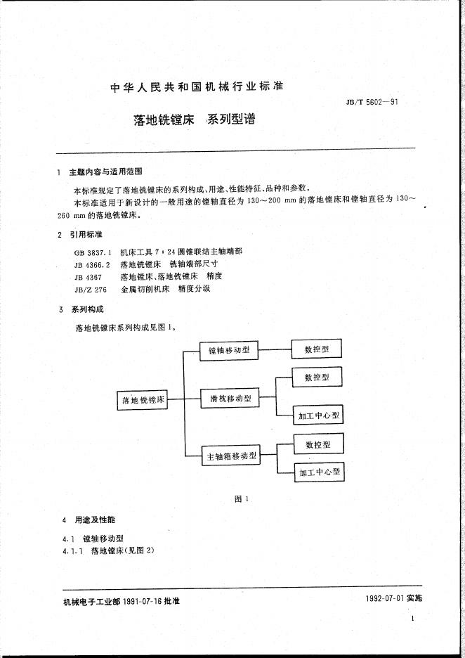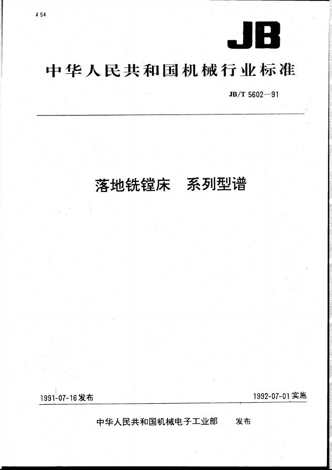 JB/T 5602-1991 落地铣镗床 系列型谱