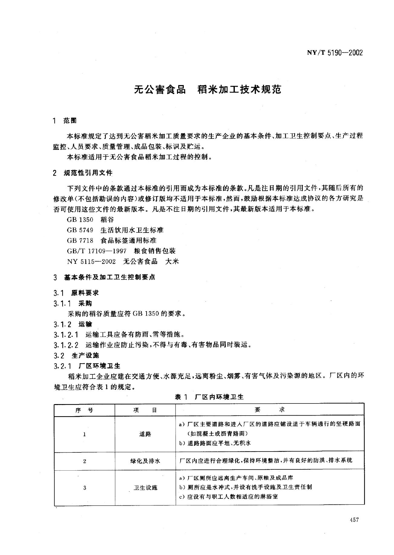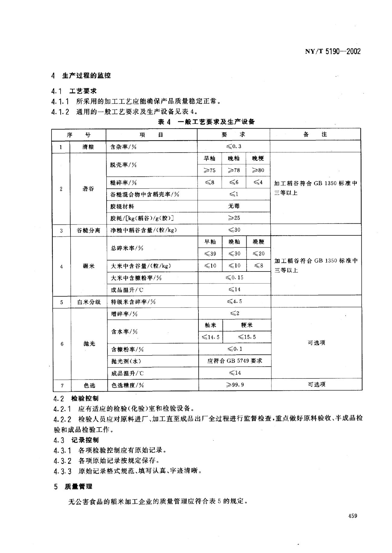 NY/T 5190-2002 无公害食品 稻米加工技术规范