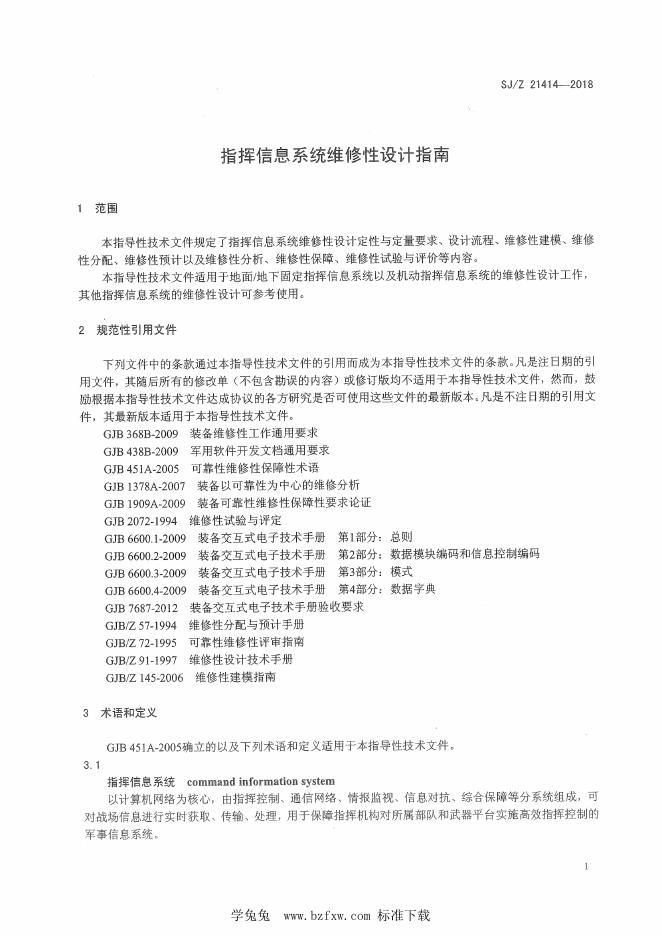 SJ/Z 21414-2018 指挥信息系统维修性设计指南