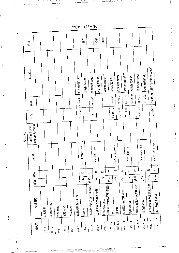 YY/T 0192-1994 制药机械标准体系表
