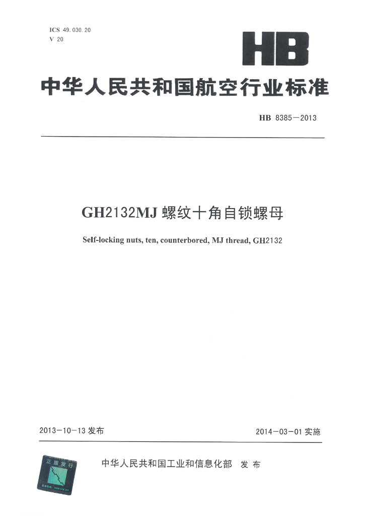 HB 8385-2013 GH2132MJ螺纹十角自锁螺母