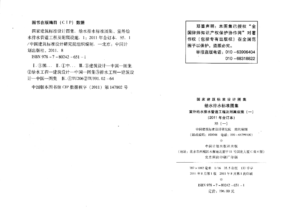 S5(一) 给水排水标准图集 室外给水排水管道工程及附属设施(一)(2011年合订本)
