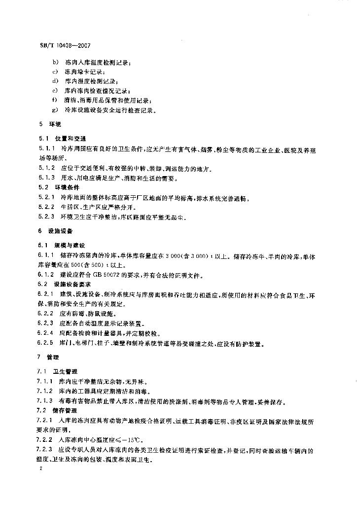 SB/T 10408-2007 国家储备冻肉储存冷库资质条件