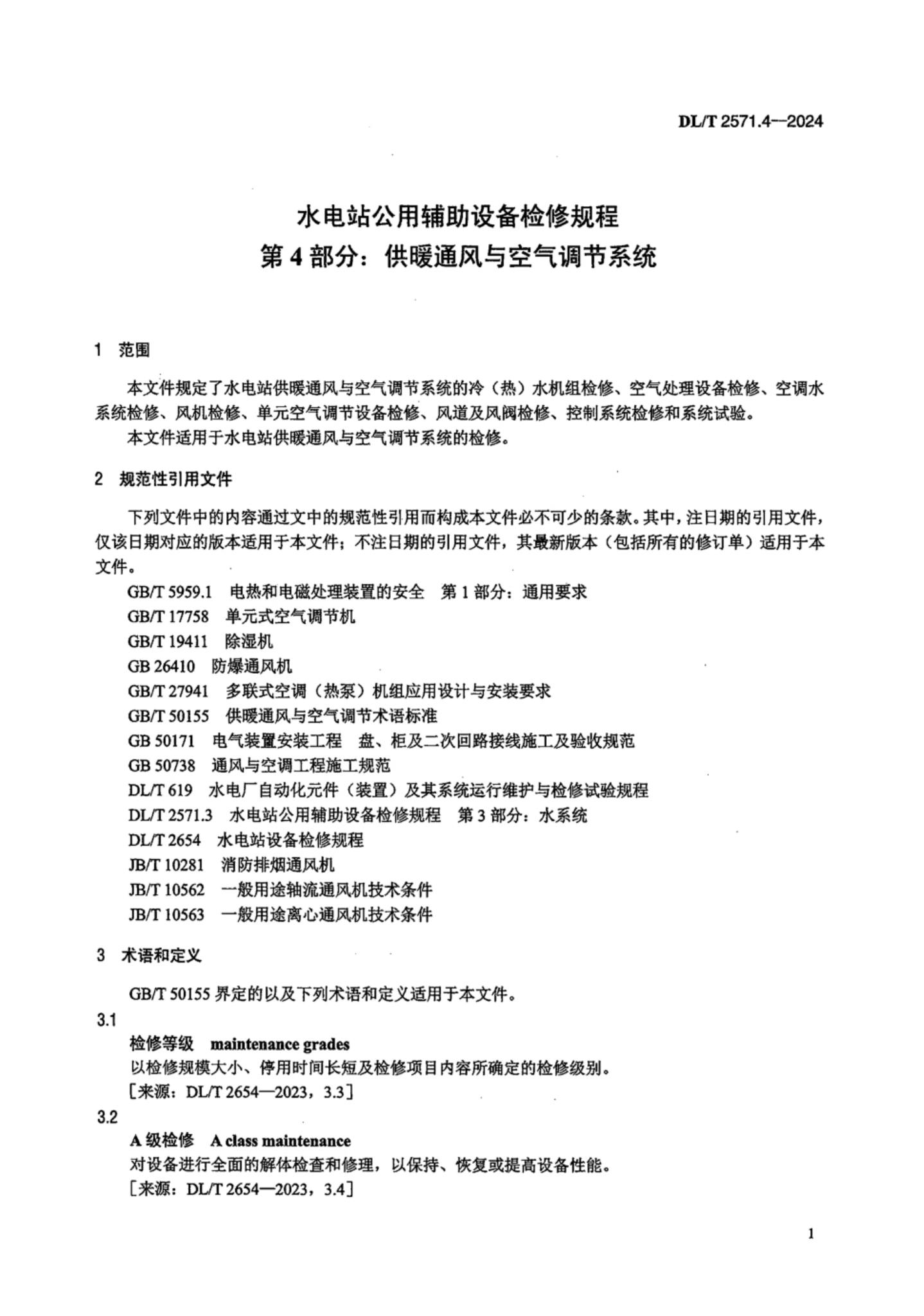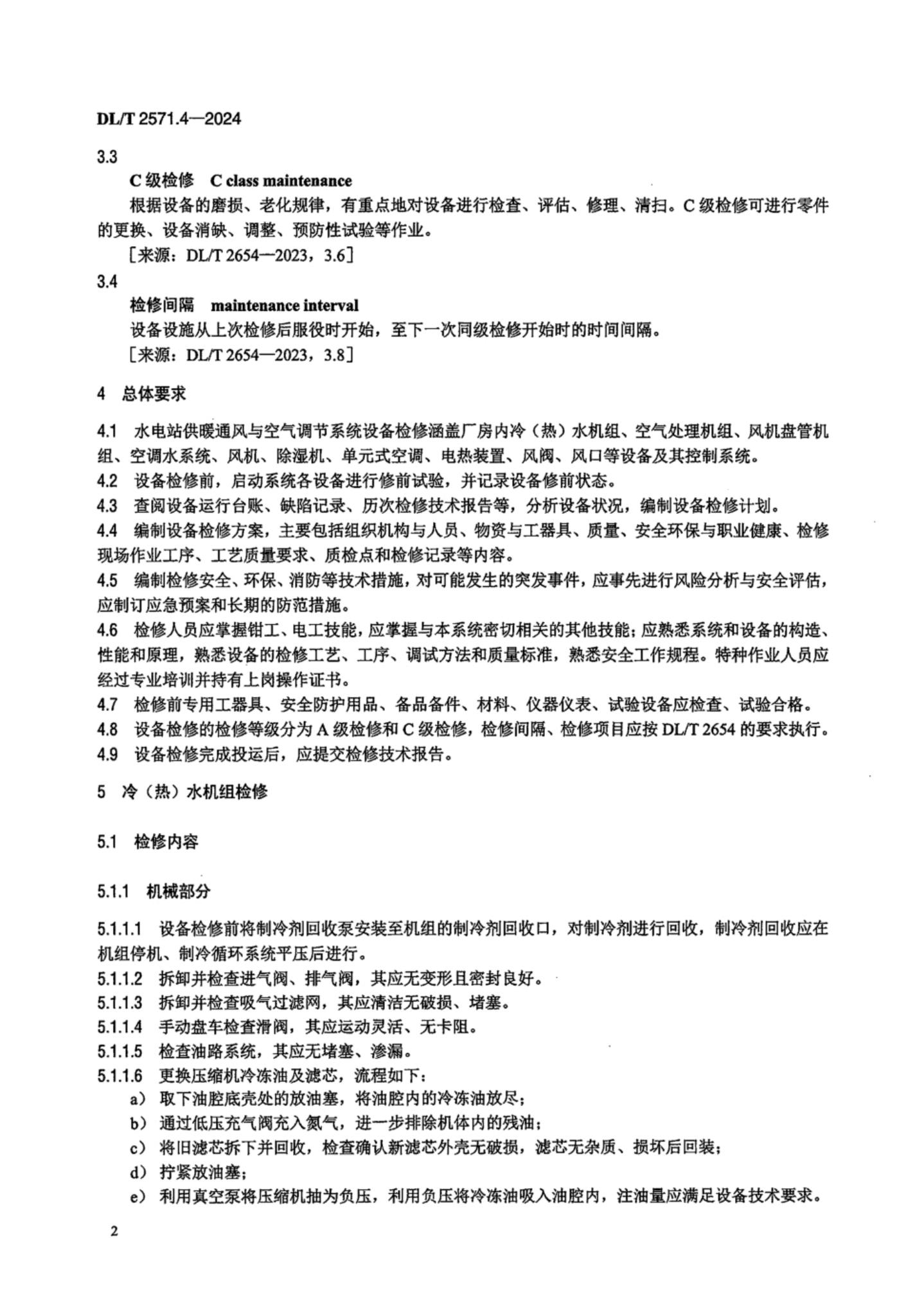 DL/T 2571.4-2024 水电站公用辅助设备检修规程 第4部分:供暖通风与空气调节系统