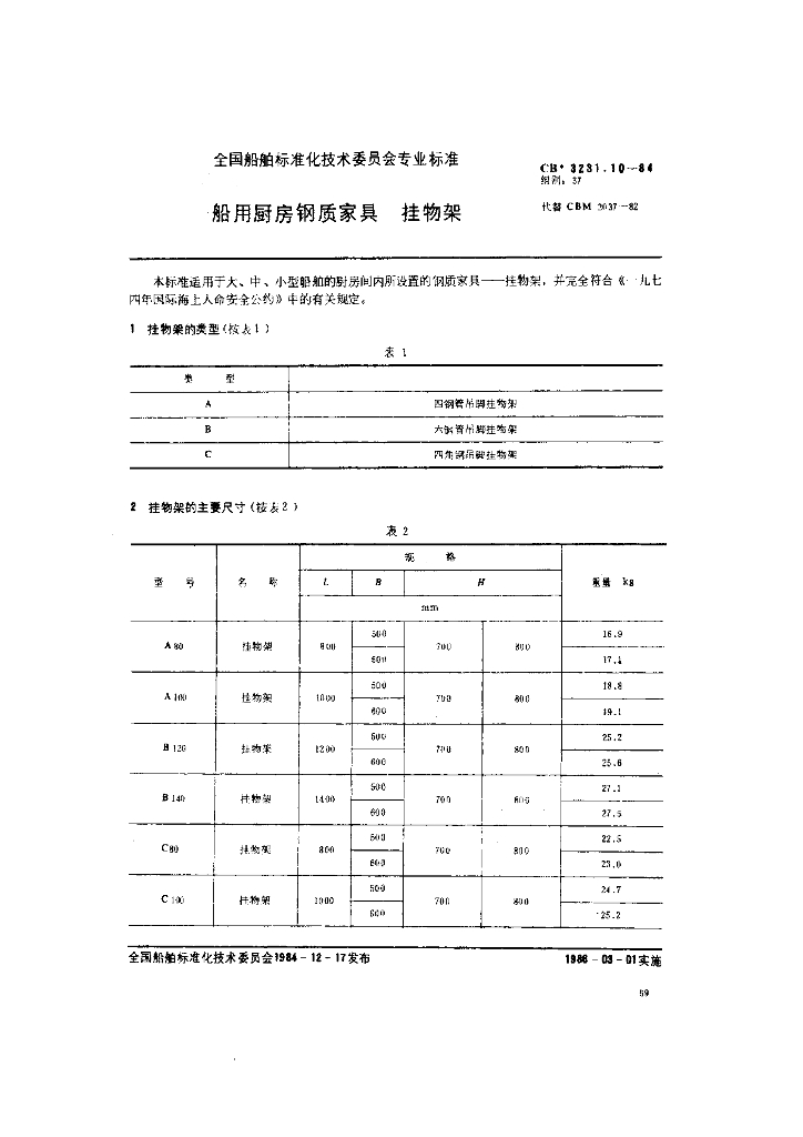 CB 3231.10-1984 船用厨房钢质家具 挂物架