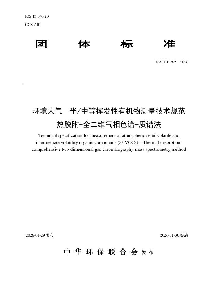 T/ACEF 262-2026 环境大气 半 中等挥发性有机物测量技术规范 热脱附-全二维气相色谱-质谱法