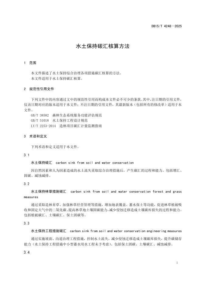 DB15/T 4248-2025 水土保持碳汇核算方法