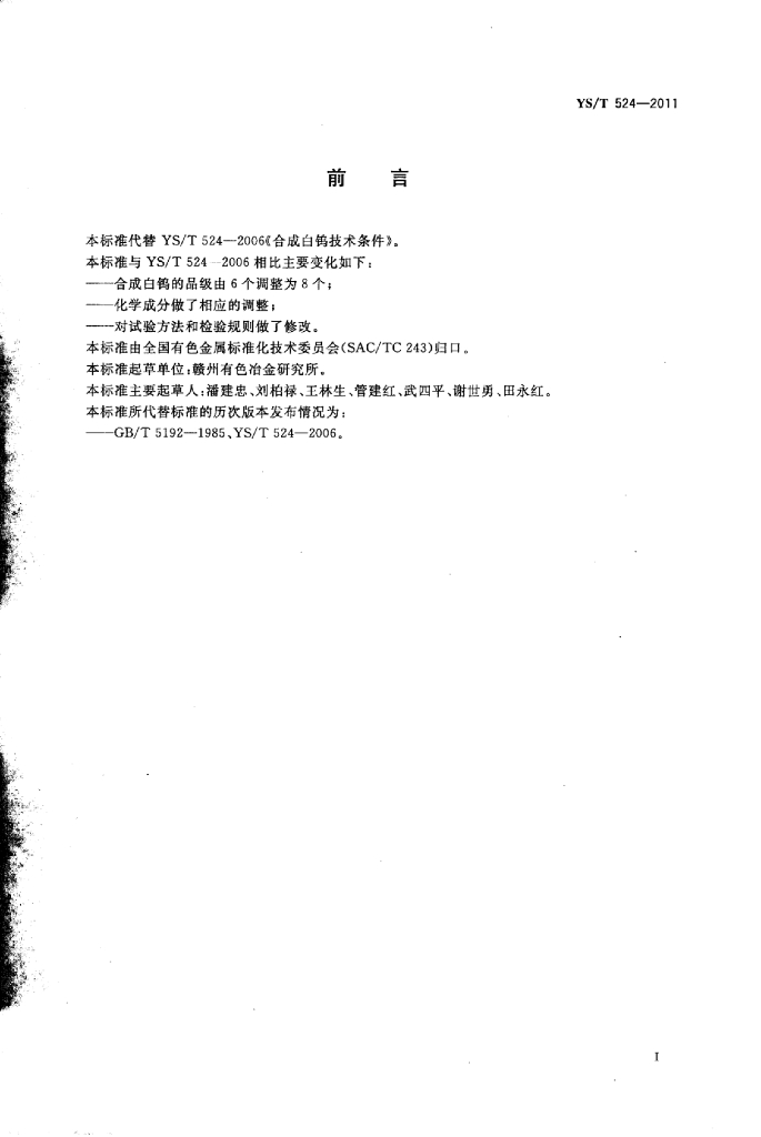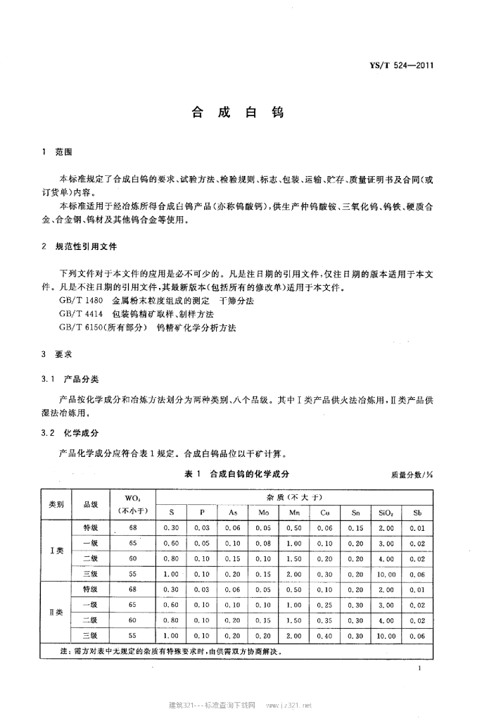 YS/T 524-2011 合成白钨