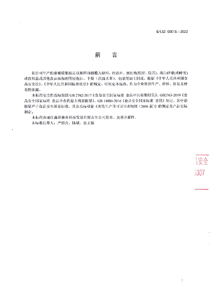 Q/LSZ 0001S-2022 油橄榄果脯