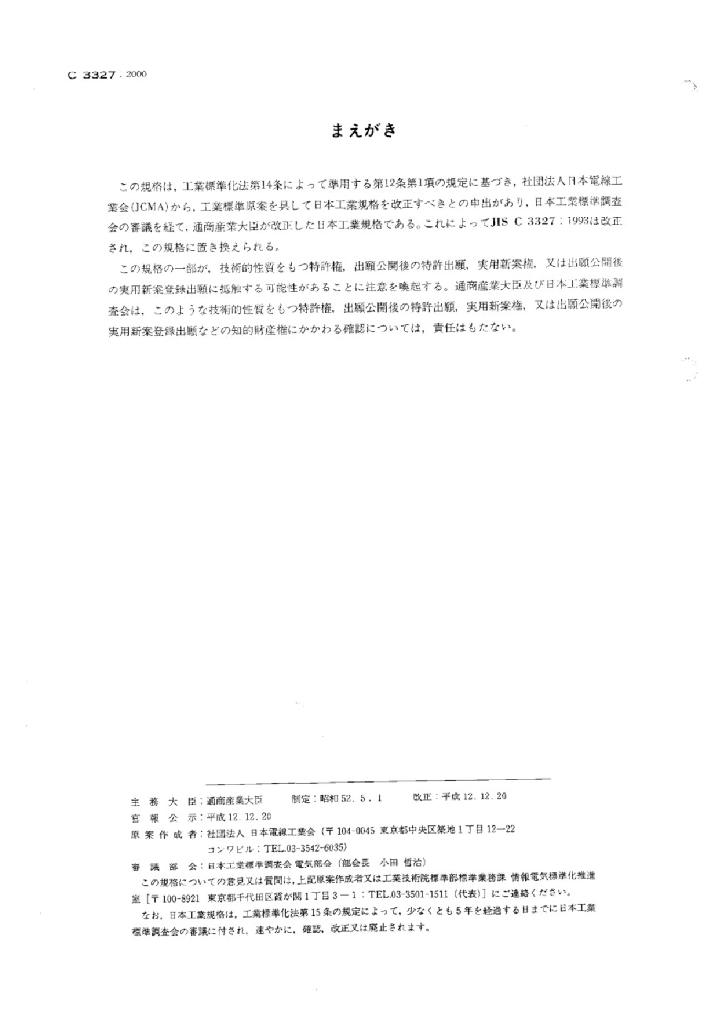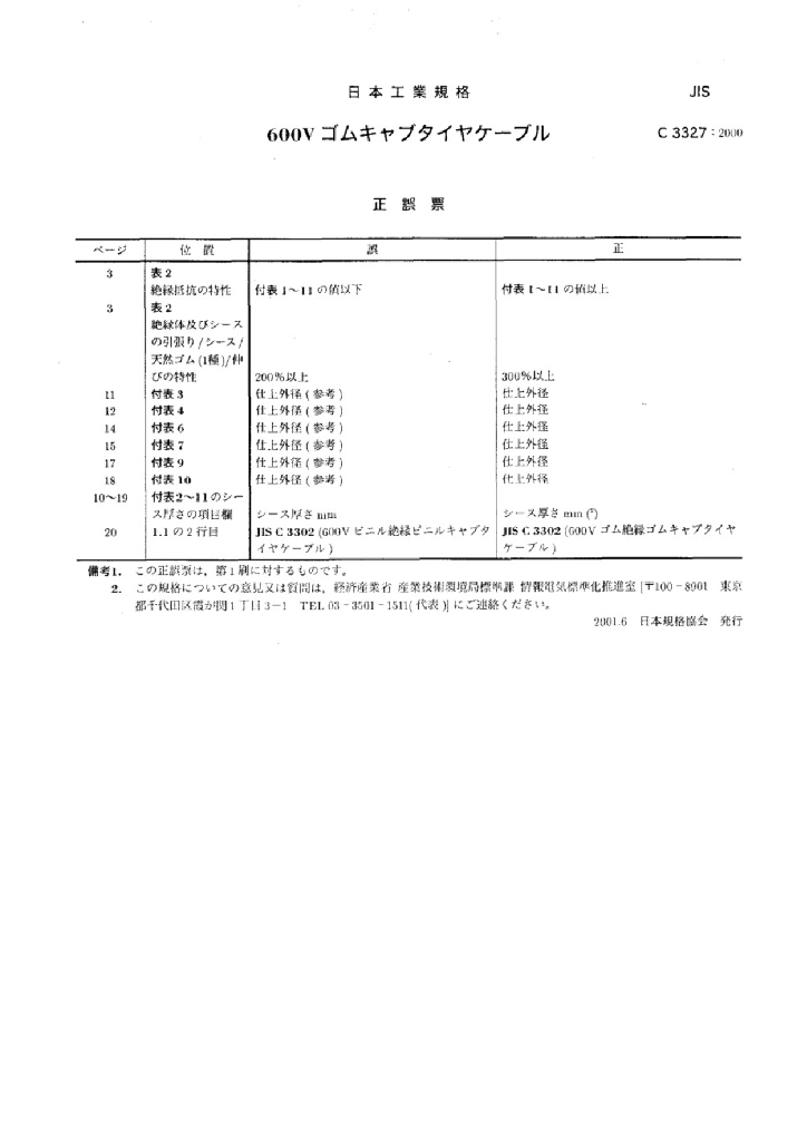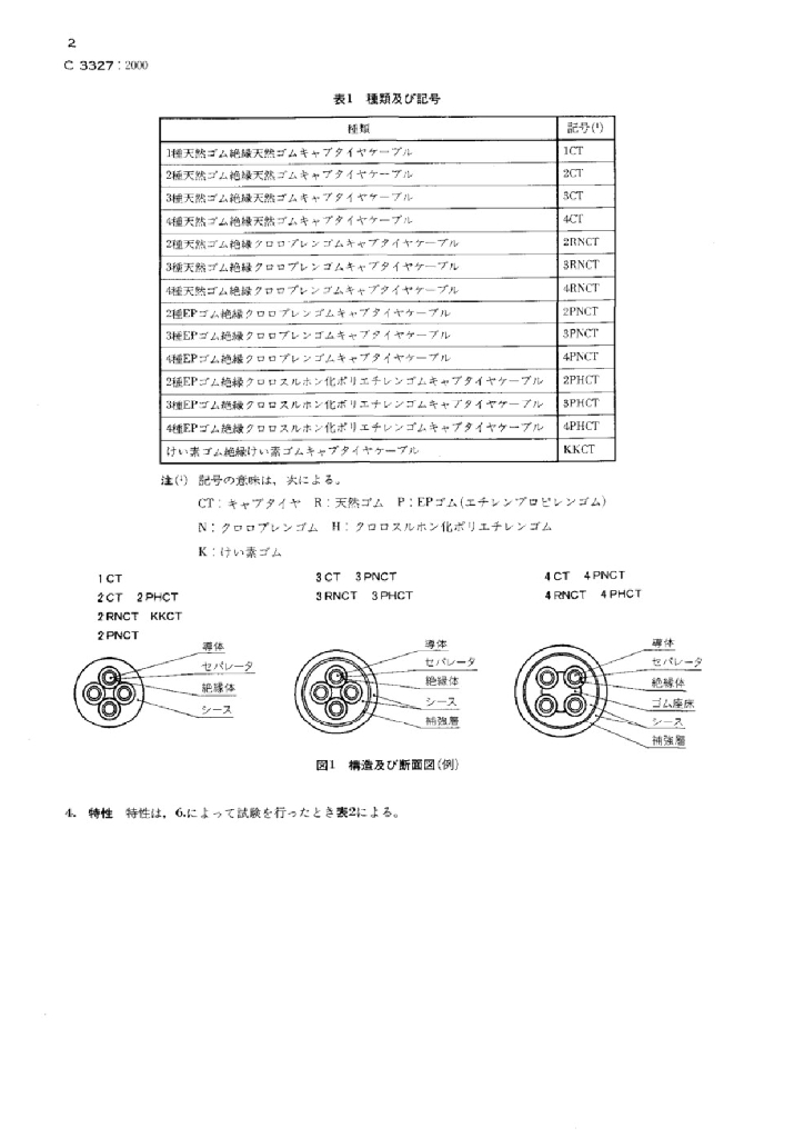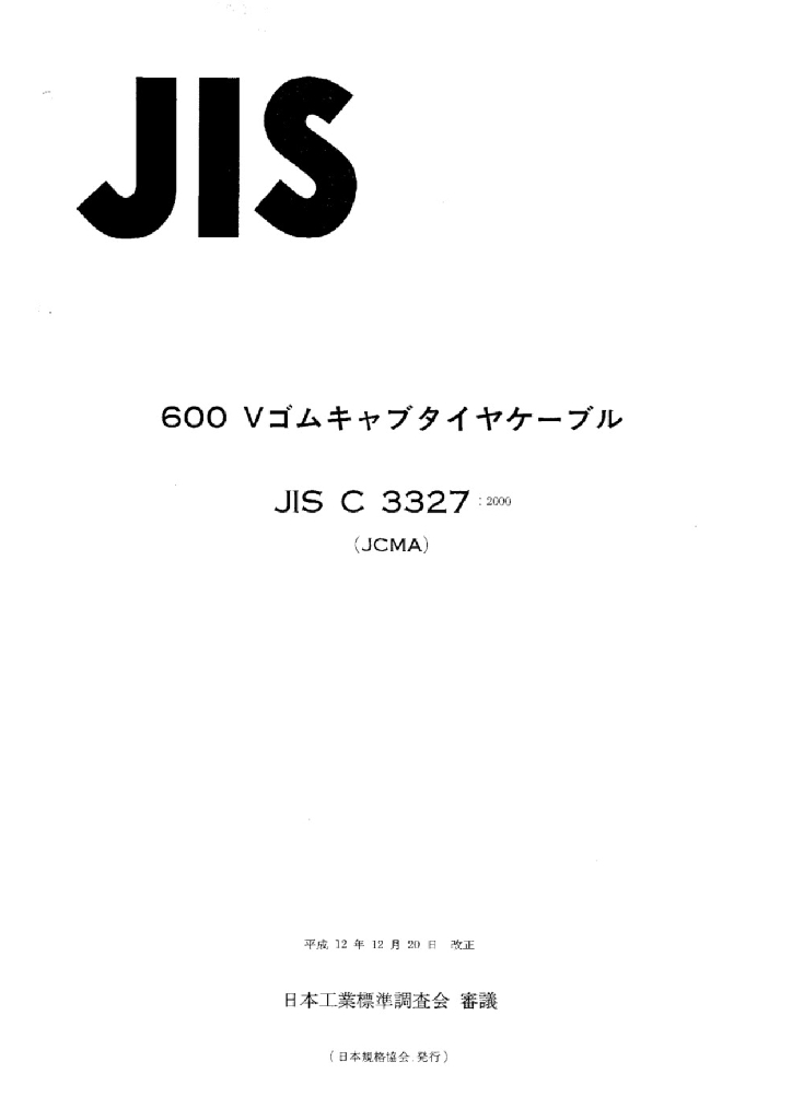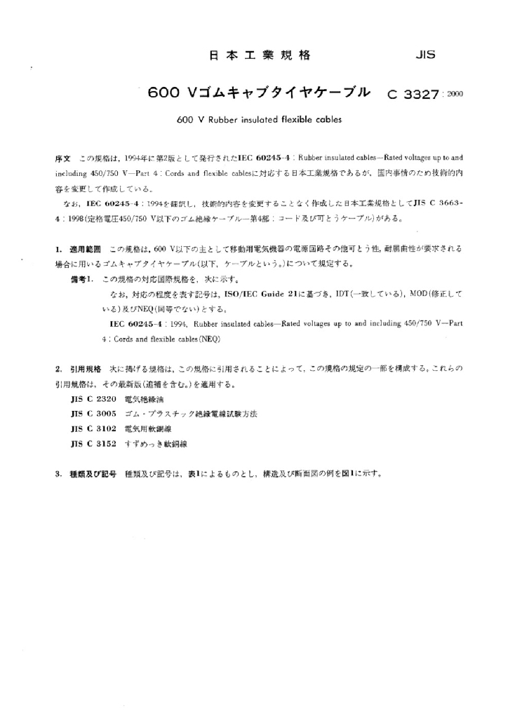 JIS C3327:2000 600V橡胶绝缘橡套软电缆