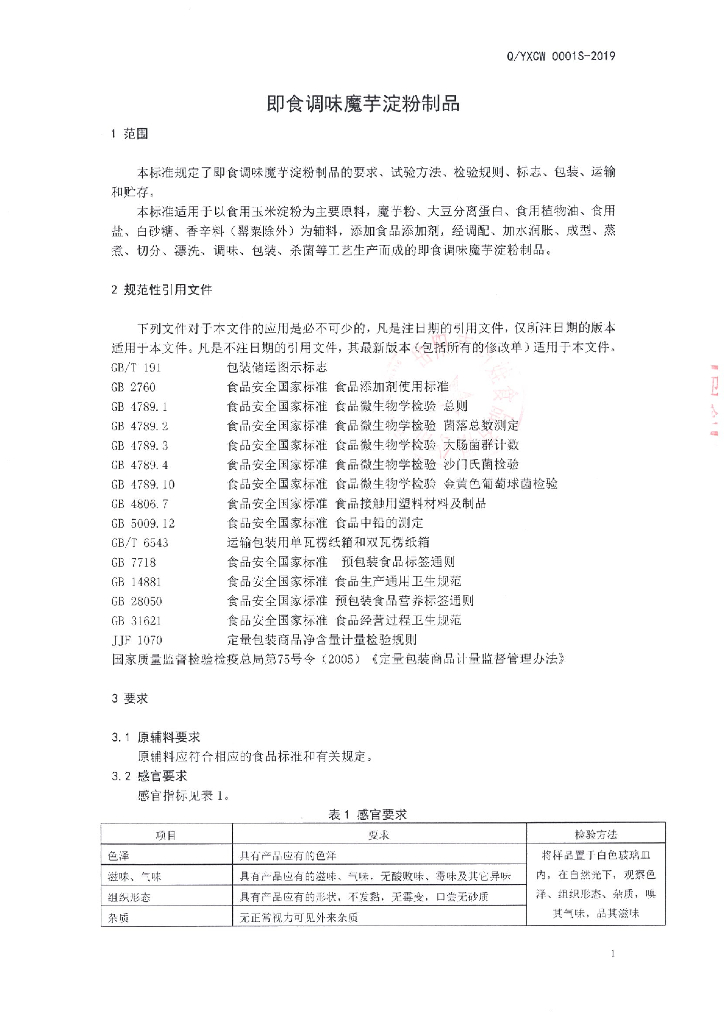 Q/YXCW 0001S-2019 即食调味魔芋淀粉制品