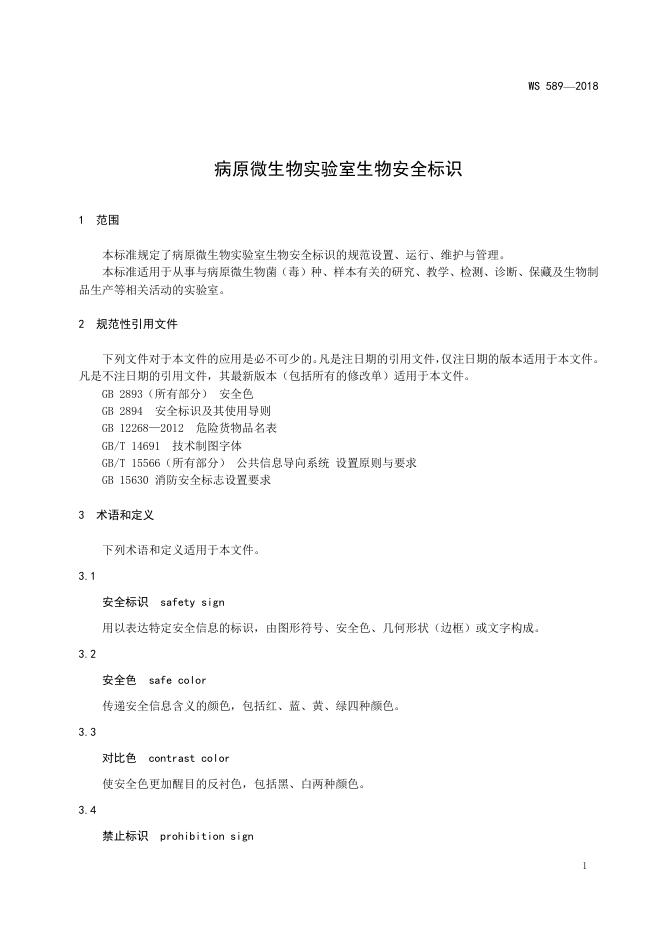 WS/T 589-2018 病原微生物实验室生物安全标识