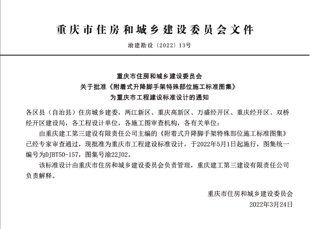 渝22J02 附着式升降脚手架特殊部位施工标准图集(DJBT50-157)