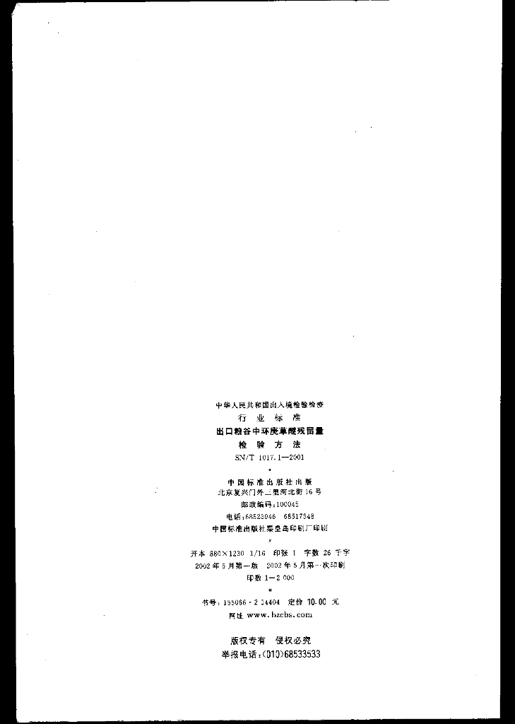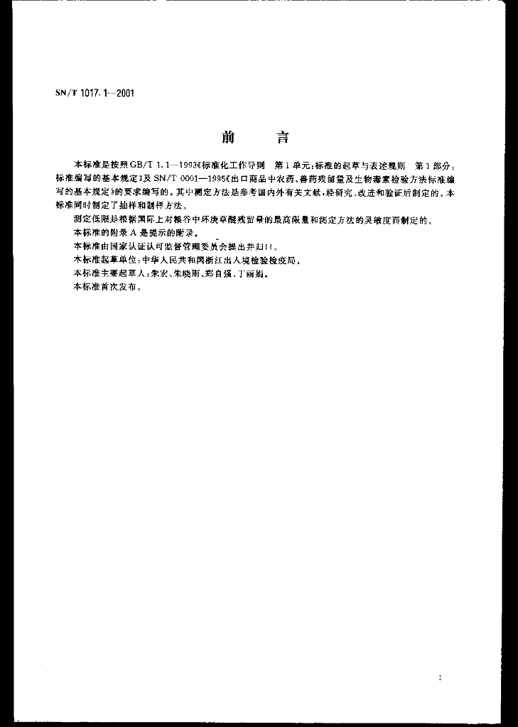 SN/T 1017.1-2001 出口粮谷中环庚草醚残留量检验方法