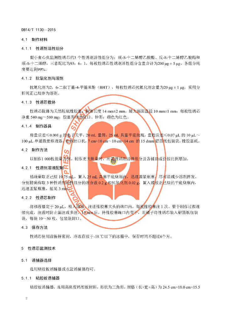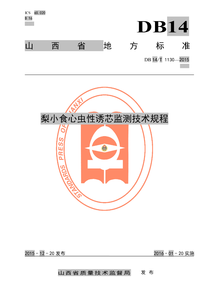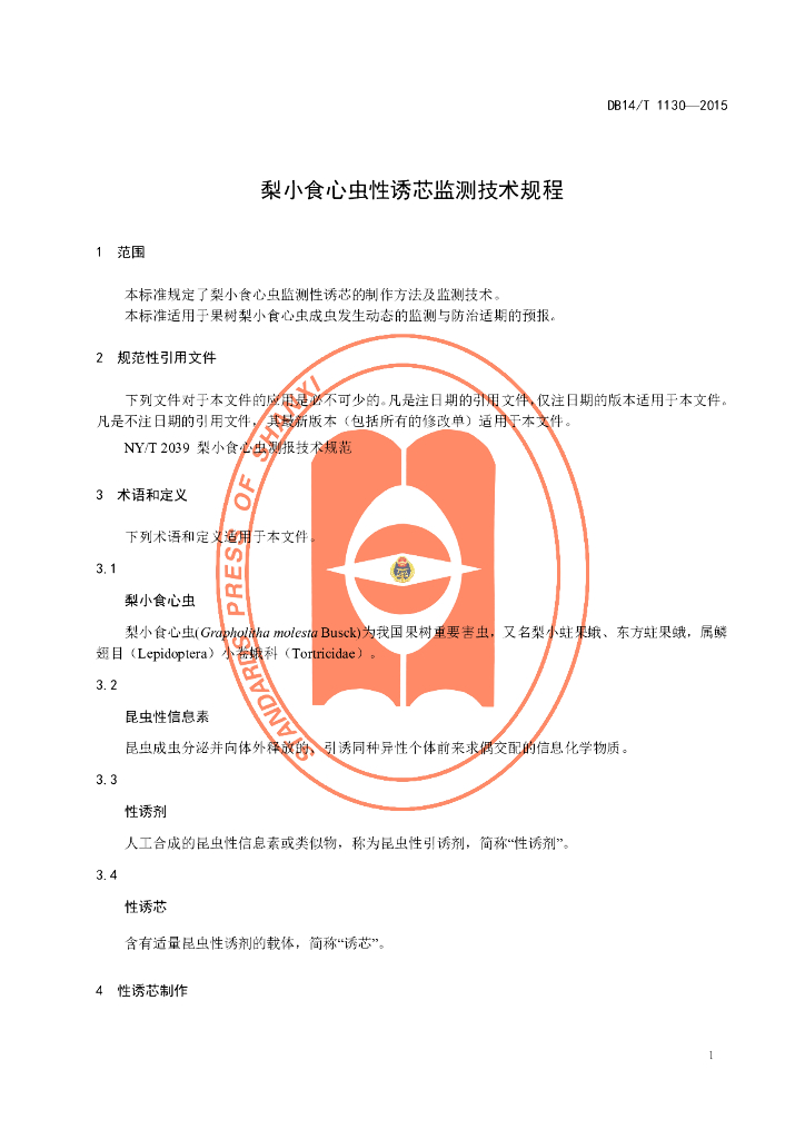 DB14/T 1130-2015 梨小食心虫性诱芯监测技术规程