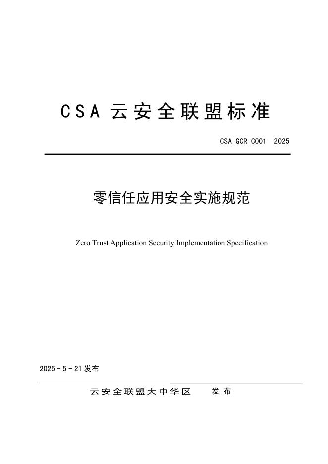 CSA GCR C001-2025 零信任应用安全实施规范