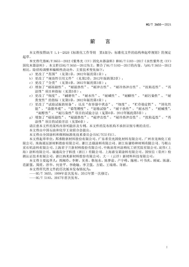 HG/T 3655-2024 紫外光(UV)固化木器涂料