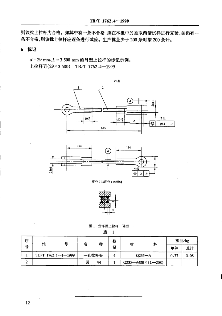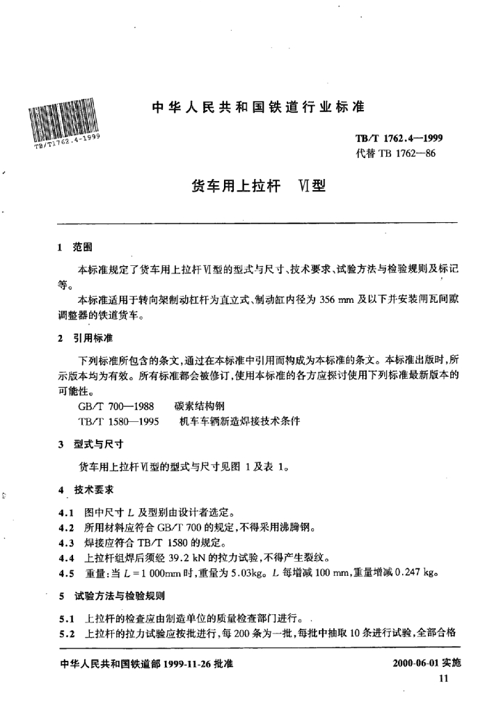 TB/T 1762.4-1999 货车用上拉杆VI 型