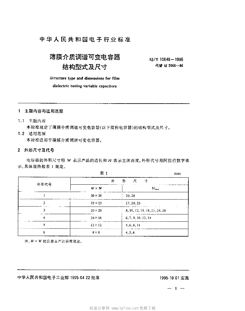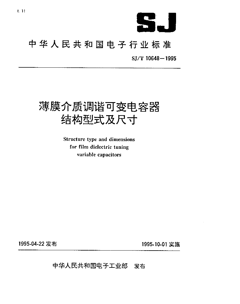 SJ/T 10648-1995 薄膜介质调谐可变电容器结构型式及尺寸