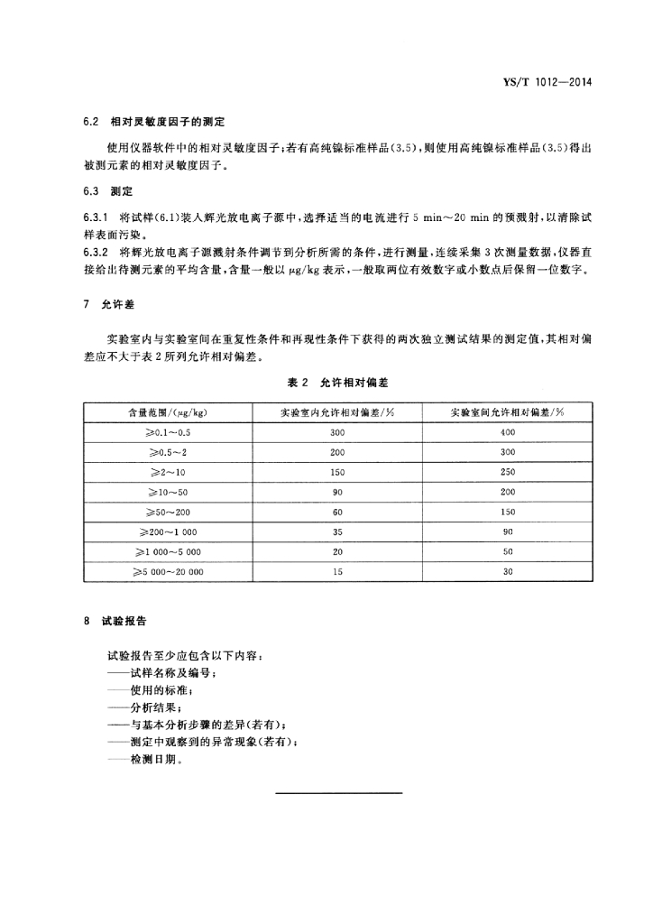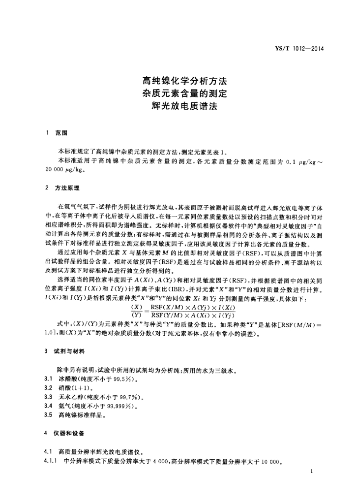 YS/T 1012-2014 高纯镍化学分析方法 杂质元素含量的测定 辉光放电质谱法