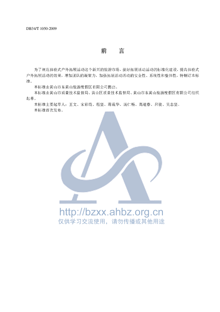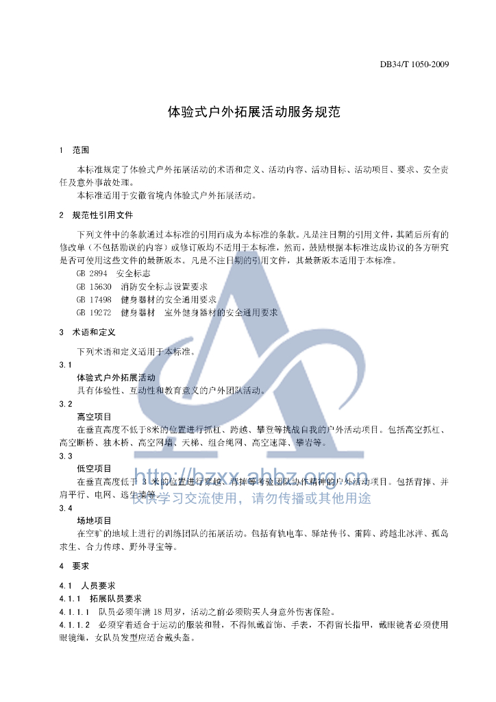 DB34/T 1050-2009 体验式户外拓展活动服务规范