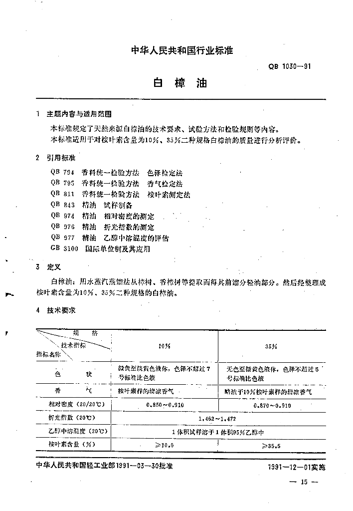 QB/T 1030-1991 白樟油