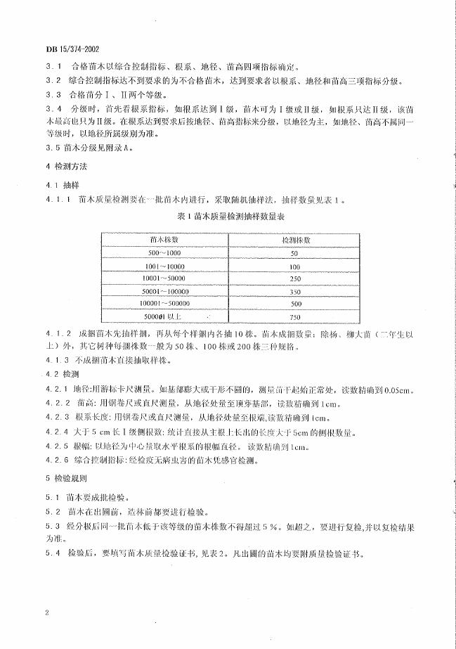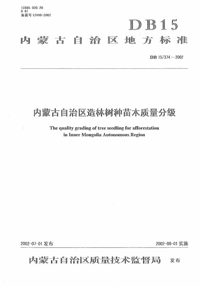 DB15/ 374-2002 内蒙古自治区主要造林树种苗木质量分级