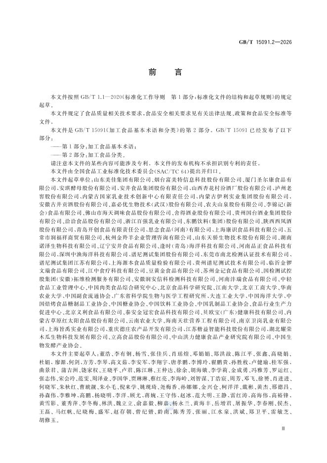 GB/T 15091.2-2026 加工食品基本术语和分类 第2部分:加工食品分类