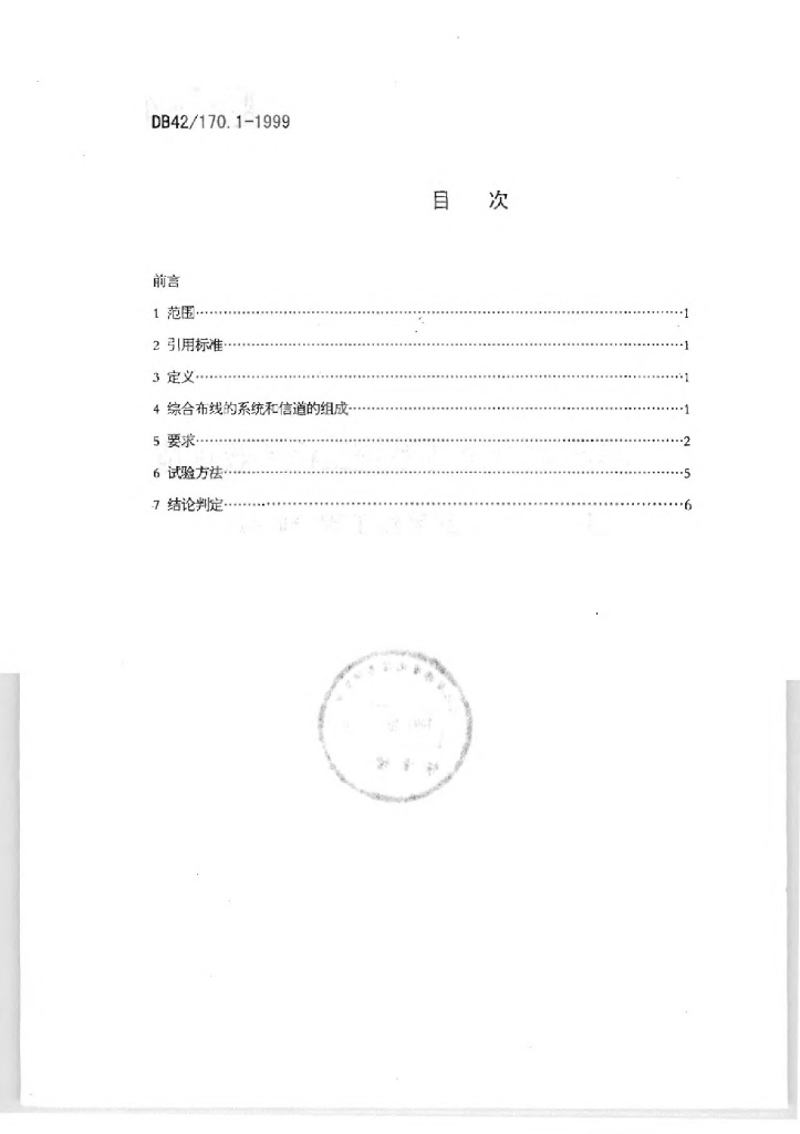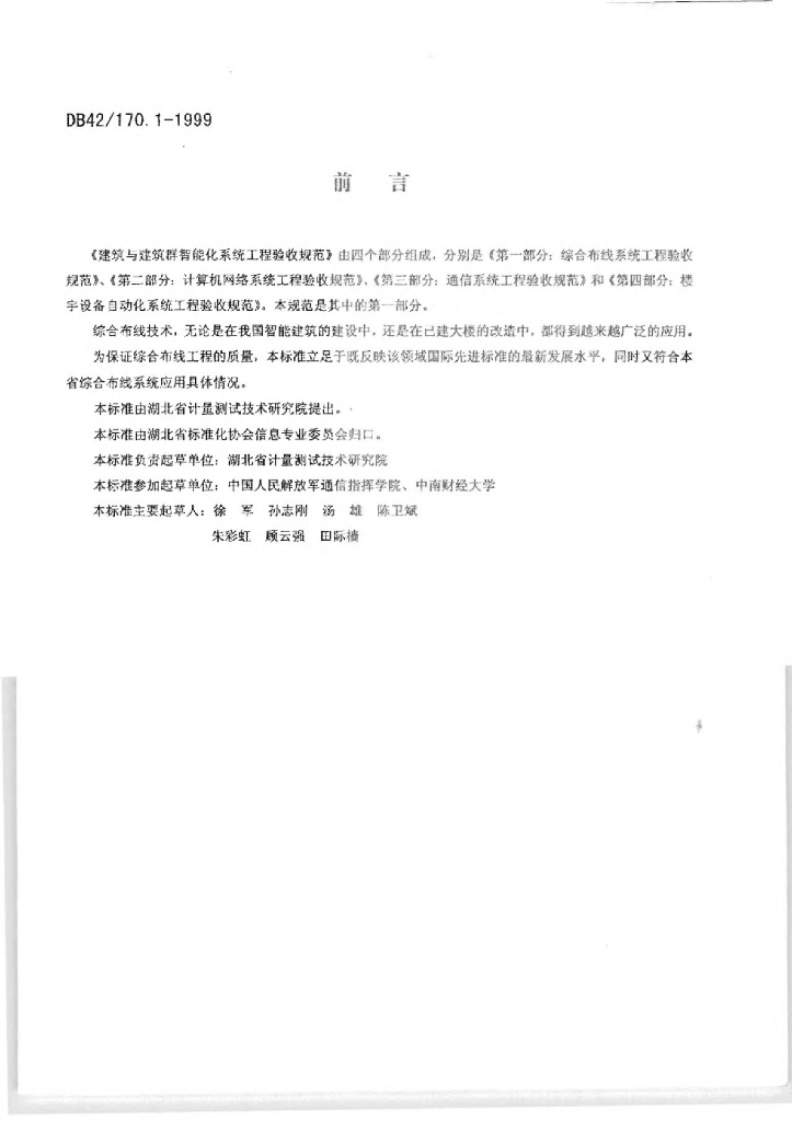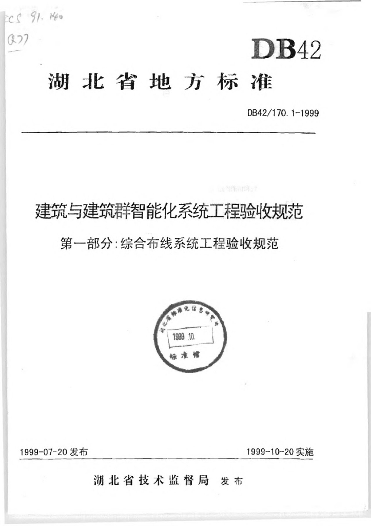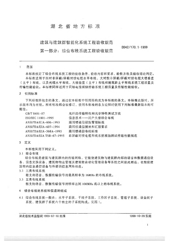 DB42/ 170.1-1999 建筑与建筑群智能化系统工程验收规范 第一部分:综合布线系统工程验收规范