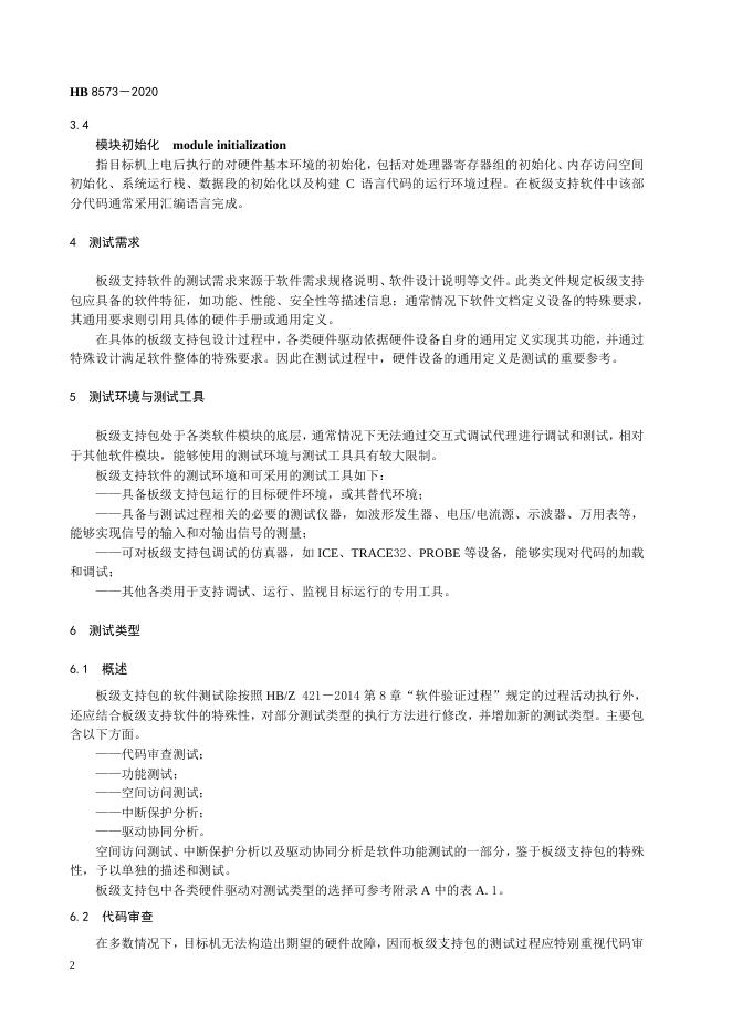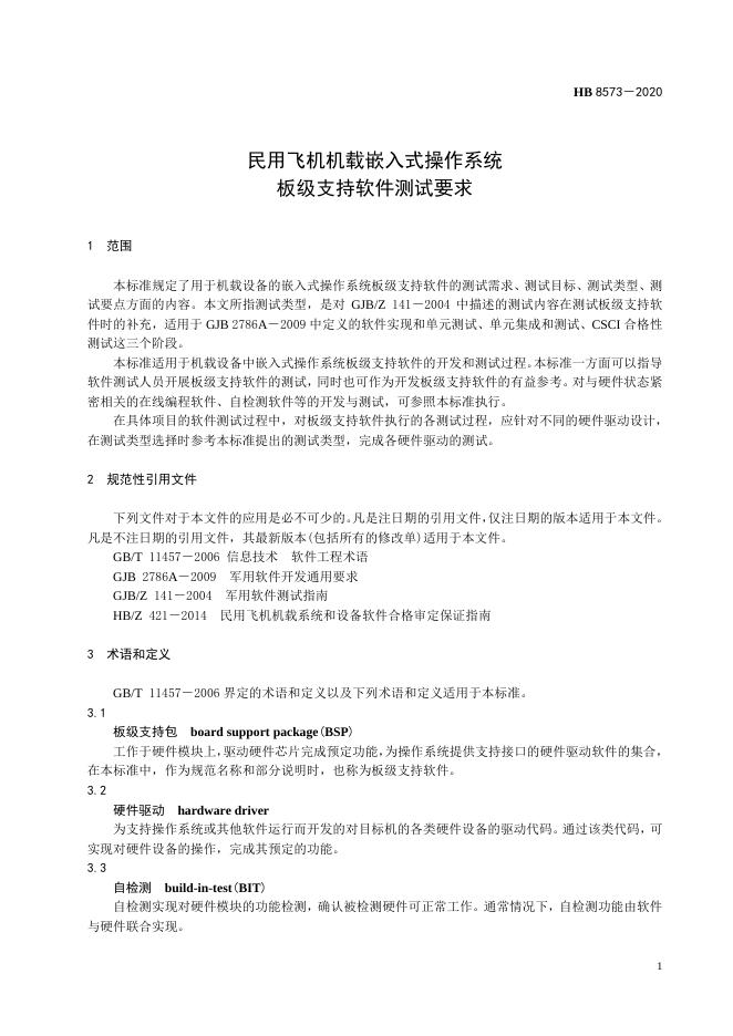 HB 8573-2020 民用飞机机载嵌入式操作系统板级支持软件测试要求
