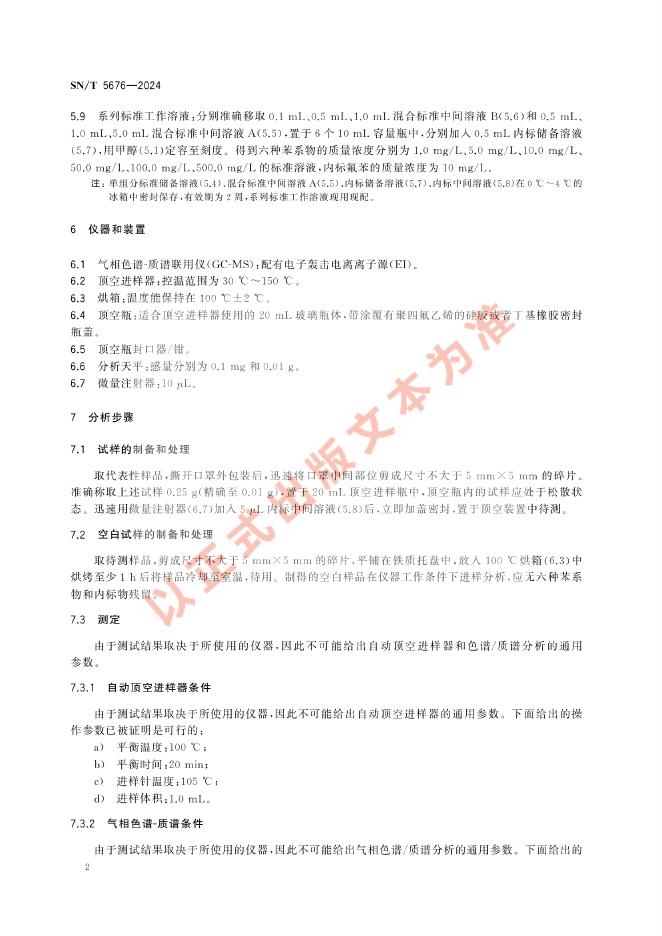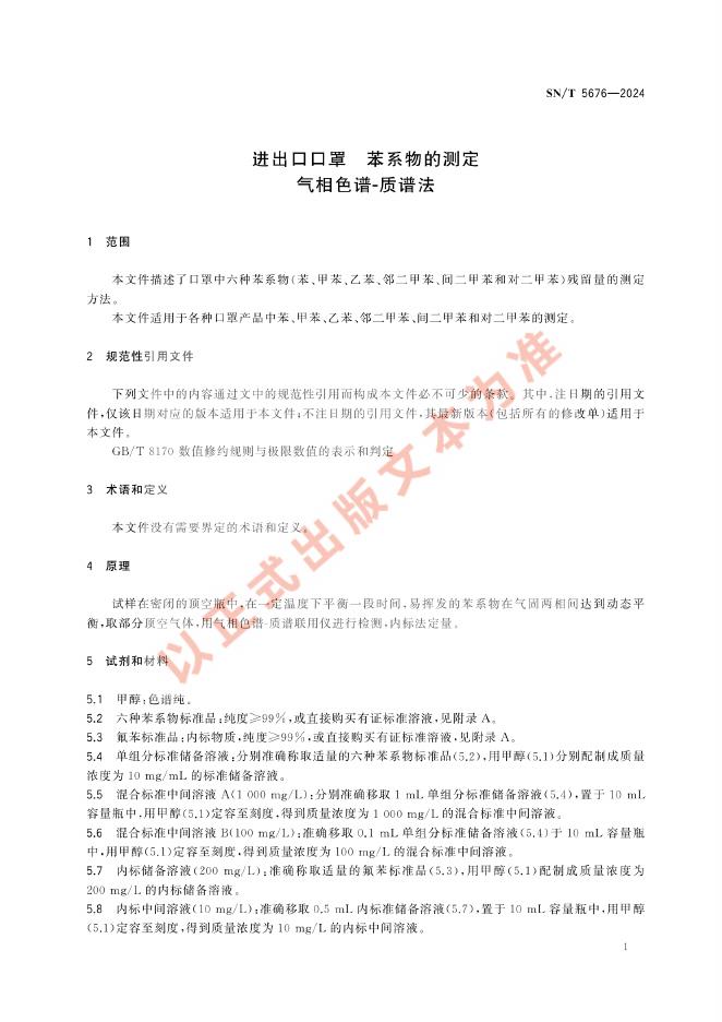 SN/T 5676-2024 进出口口罩 苯系物的测定 气相色谱-质谱法