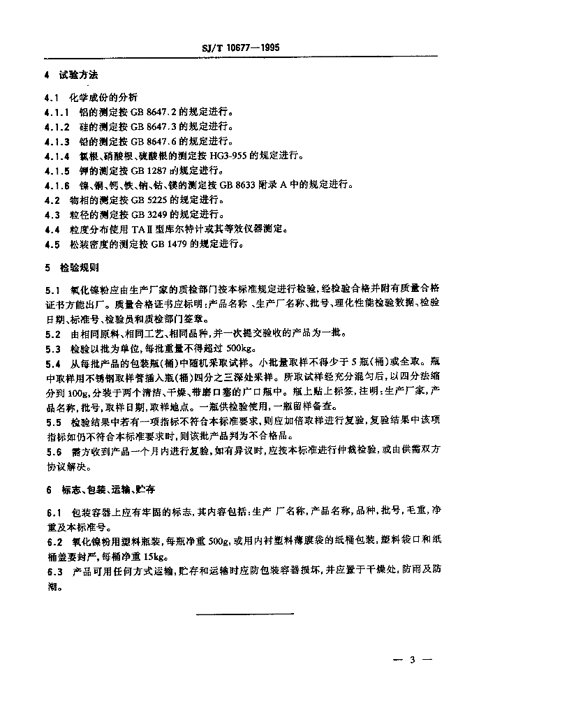 SJ/T 10677-1995 电子工业用氧化镍粉
