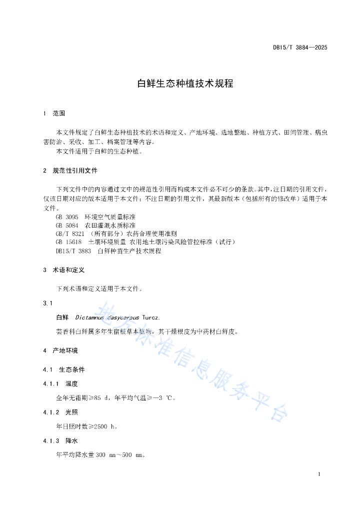 DB15/T 3884-2025 白鲜生态种植技术规程