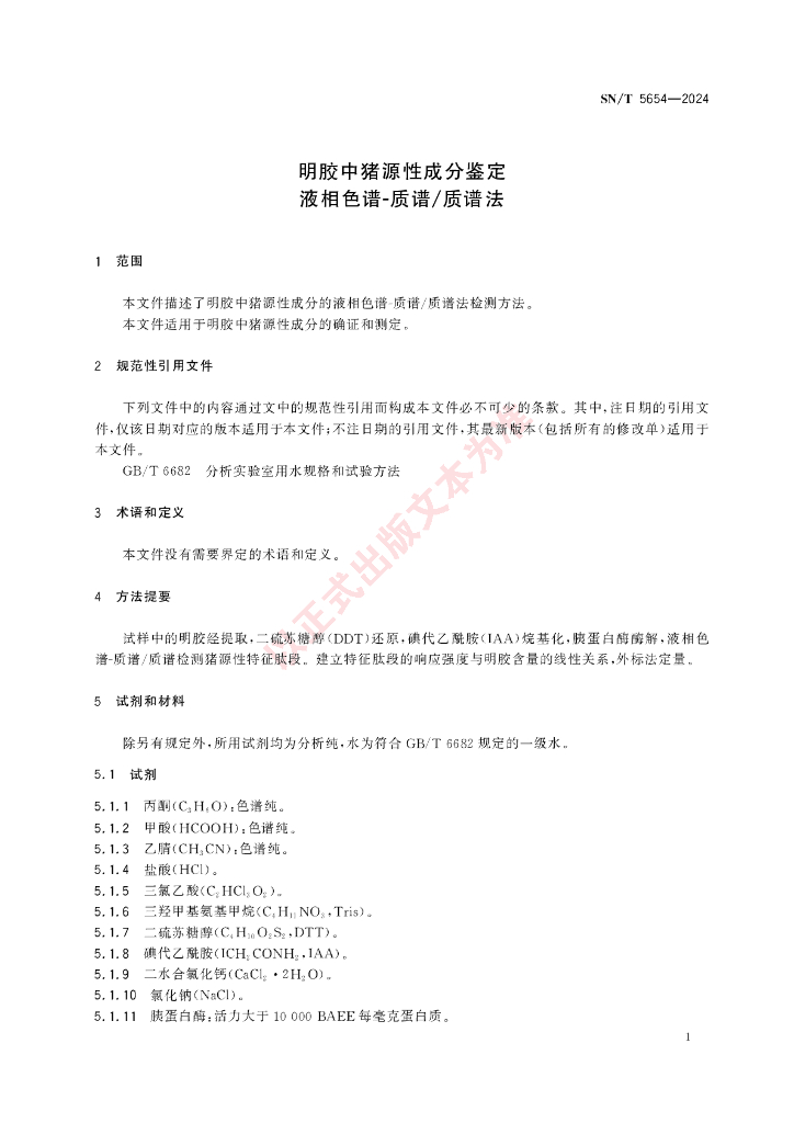 SN/T 5654-2024 明胶中猪源性成分鉴定 液相色谱-质谱质谱法