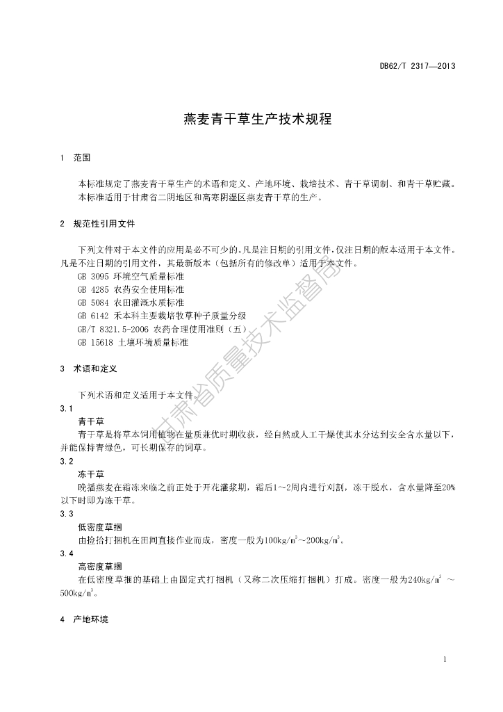 DB62/T 2317-2013 燕麦青干草生产技术规程