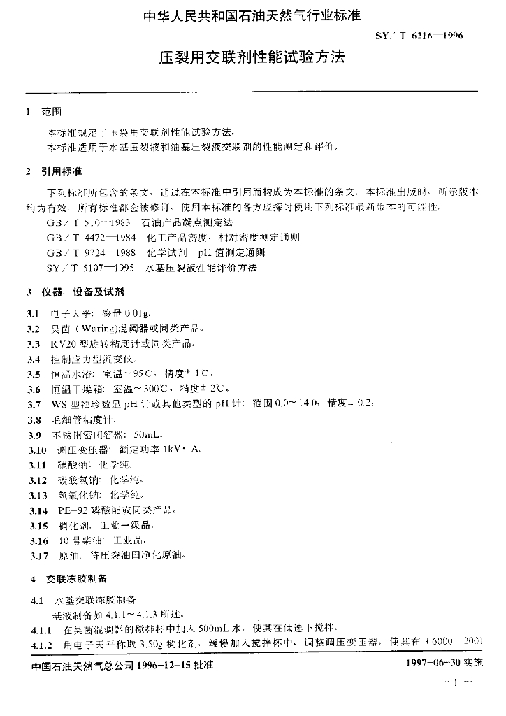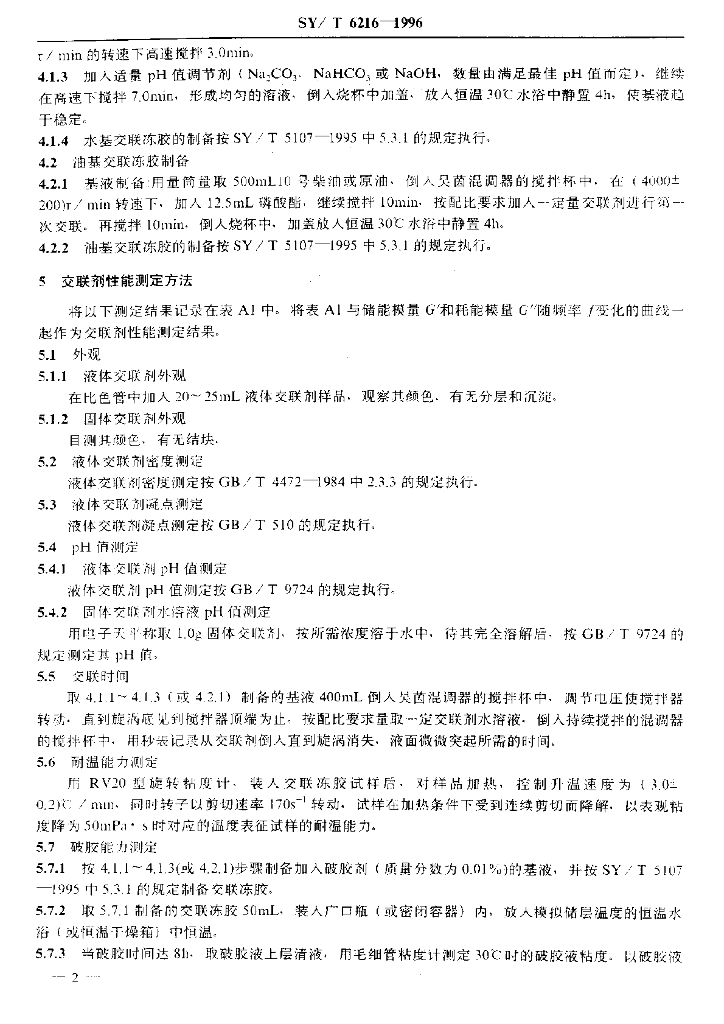 SY/T 6216-1996 压裂用交联剂性能试验方法