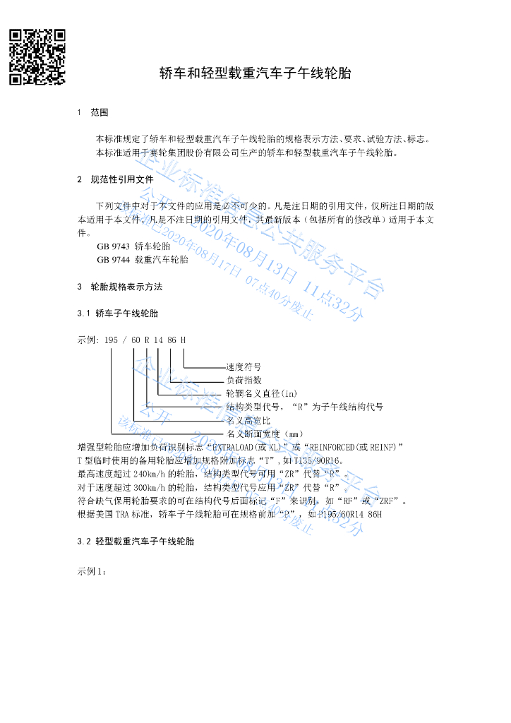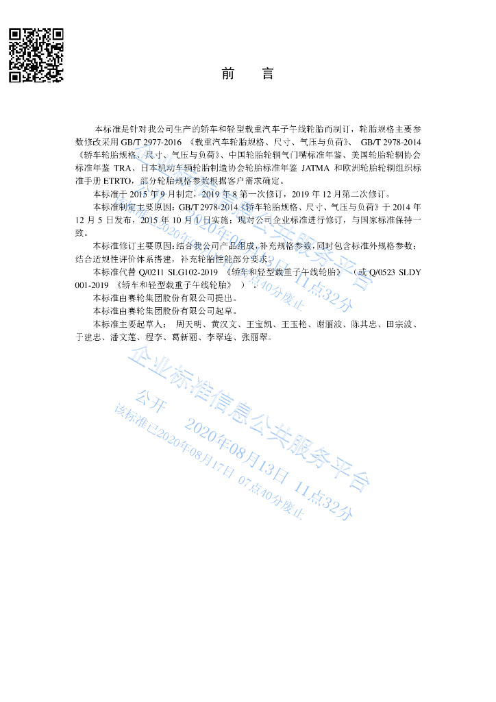 Q/0523 SLDY102-2020 轿车和轻型载重汽车子午线轮胎