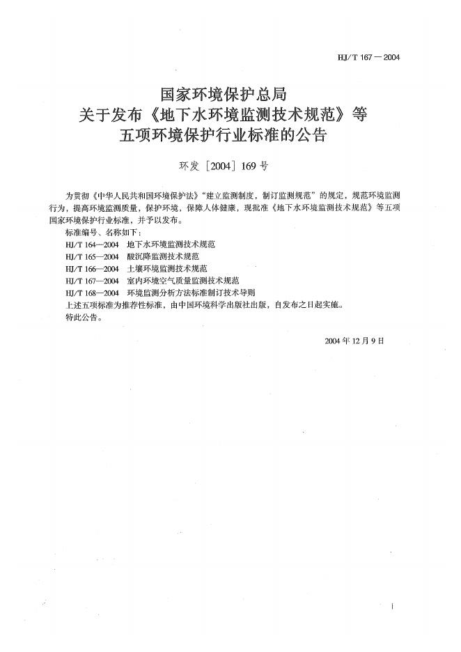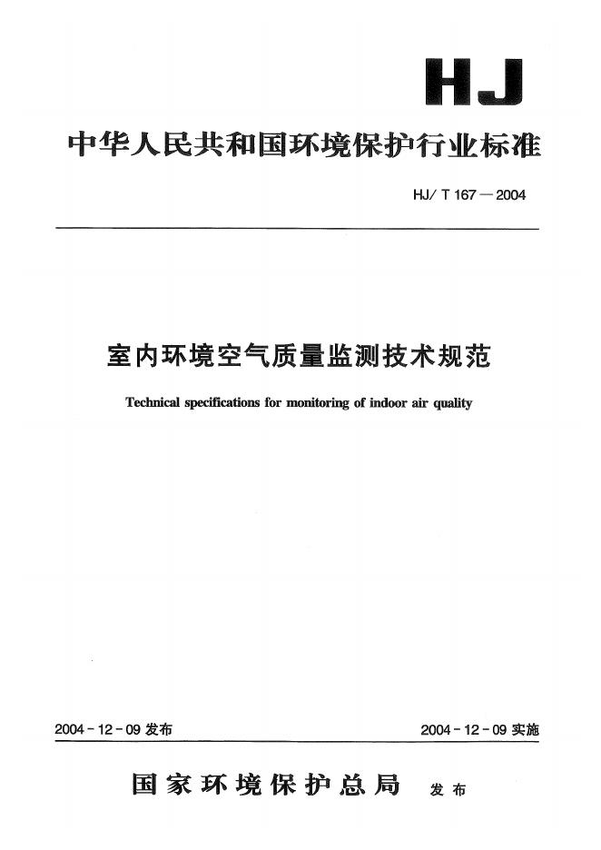 HJ/T 167-2004 室内环境空气质量监测技术规范