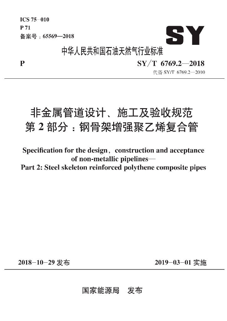 SY/T 6769.2-2018 非金属管道设计、施工及验收规范 第2部分:钢骨架增强聚乙烯复合管