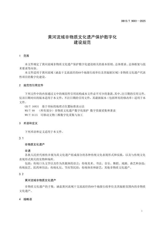 DB15/T 9001-2025 黄河流域非物质文化遗产保护数字化建设规范