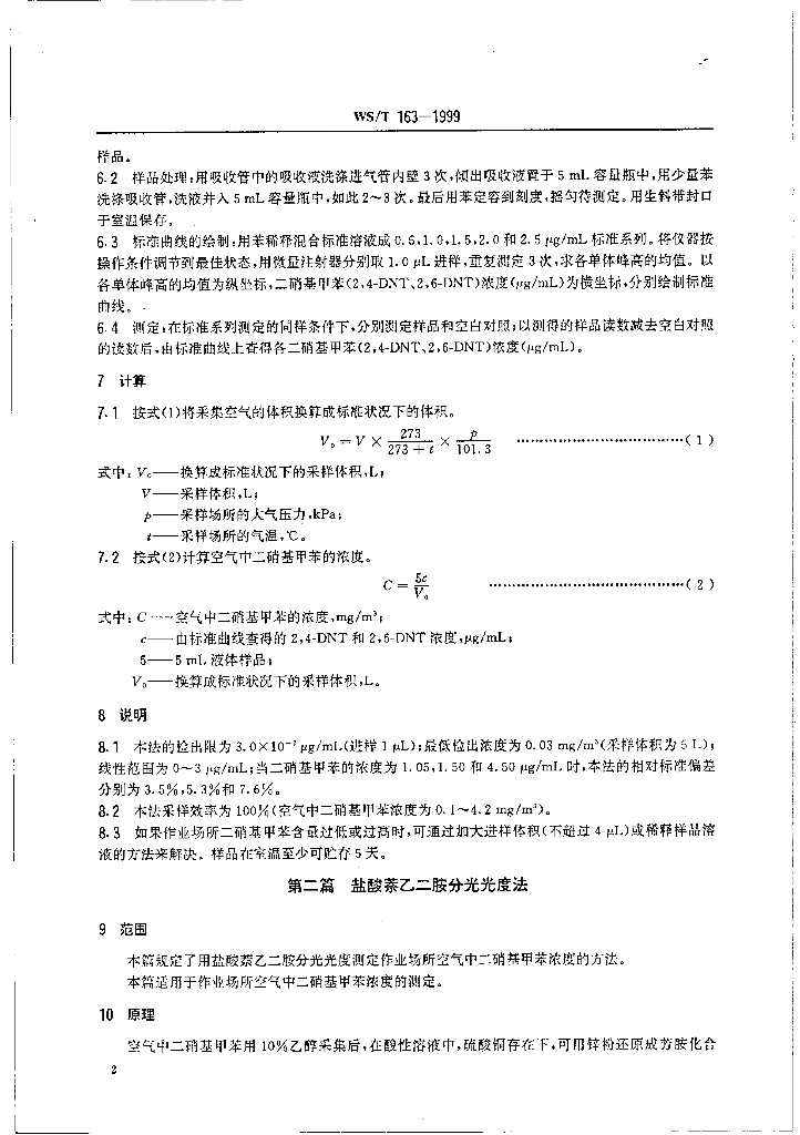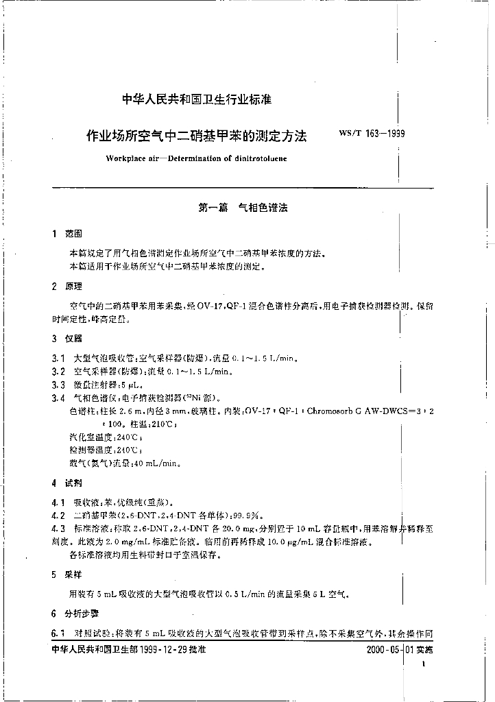 WS/T 163-1999 作业场所空气中二硝基甲苯的测定方法
