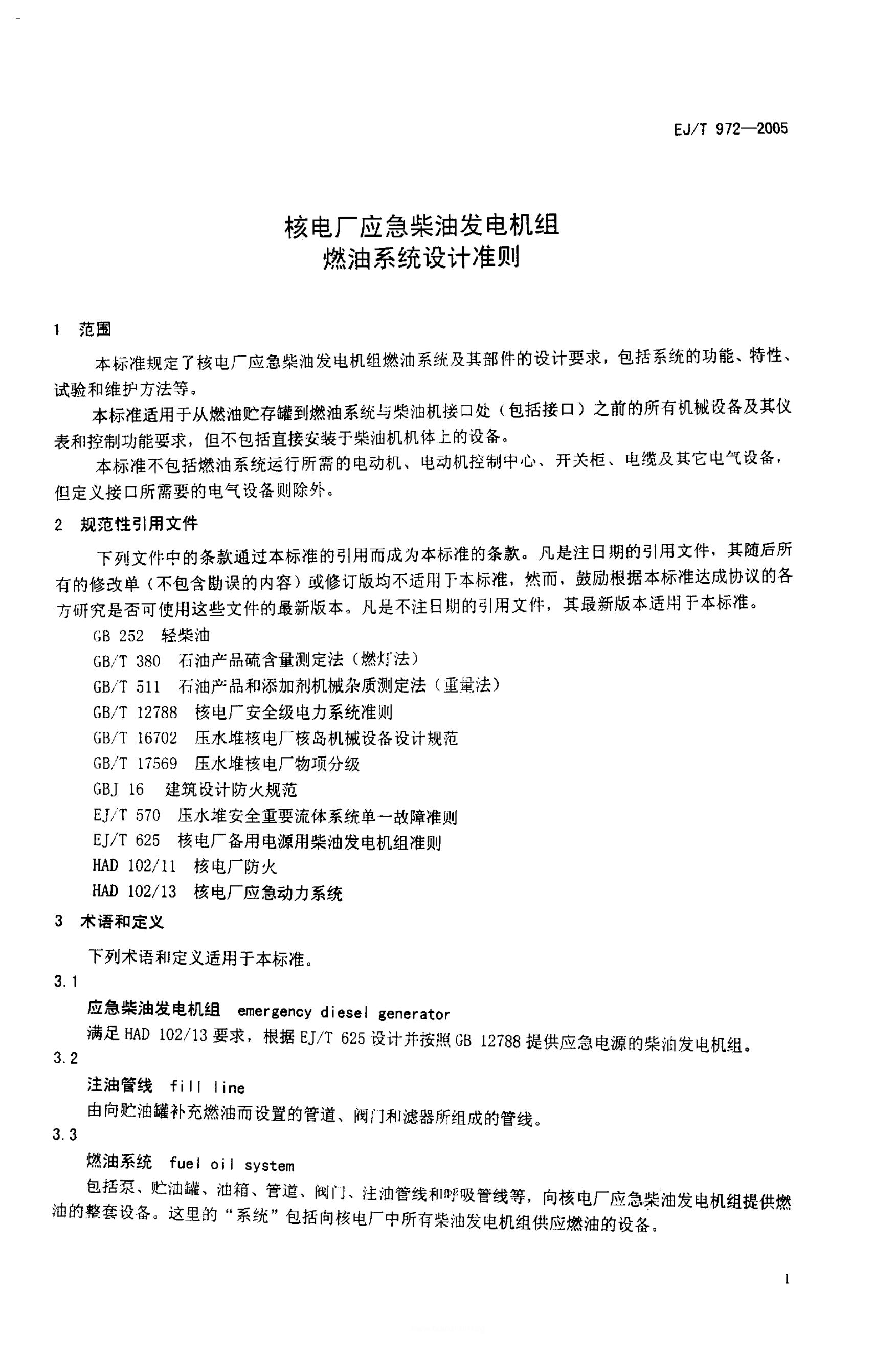 EJ/T 972-1995 核电厂应急柴油发电机组的燃油系统设计准则