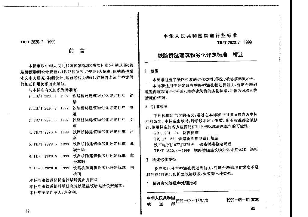 TB/T 2820.7-1999 铁路桥隧建筑物劣化评定标准 桥渡