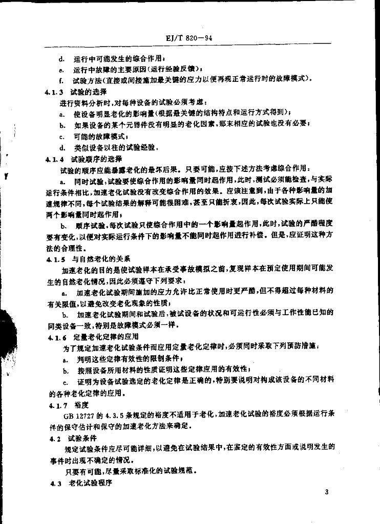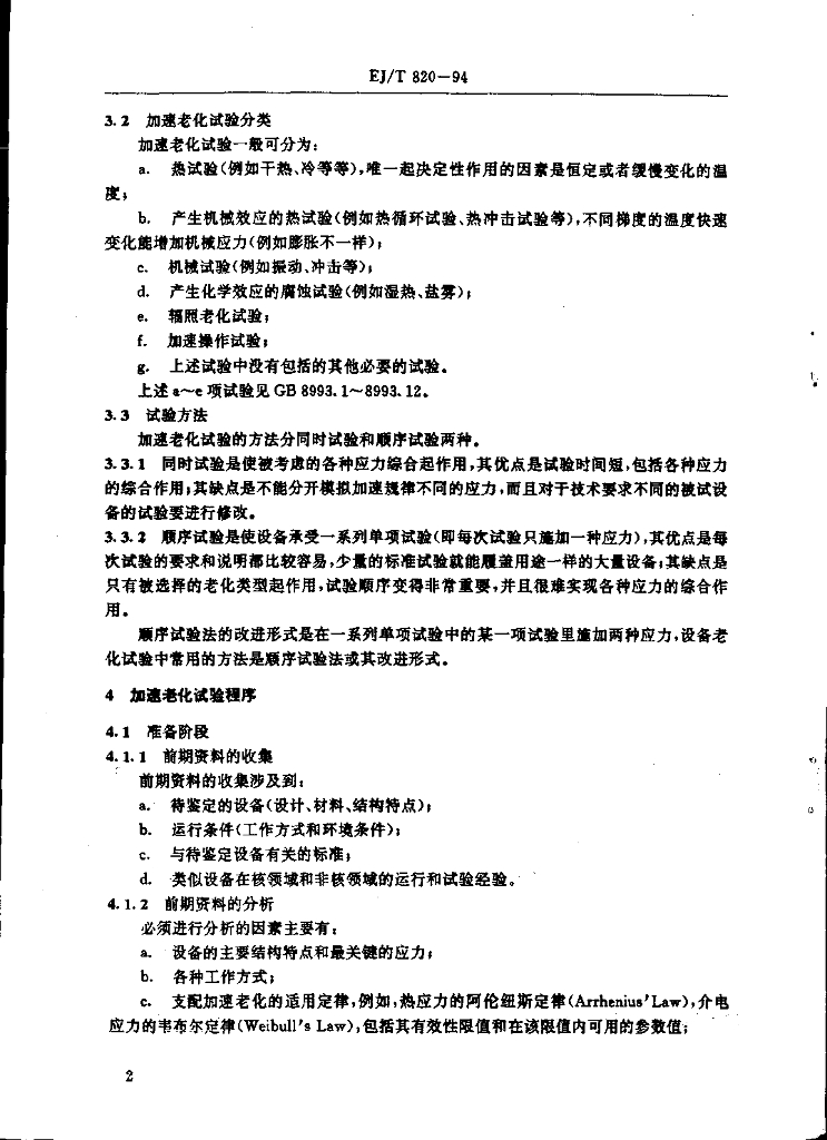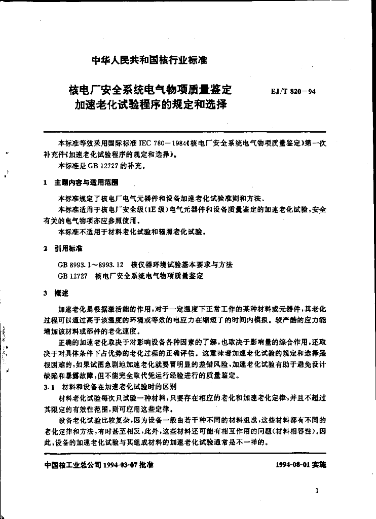 EJ/T 820-1994 核电厂安全系统电气物项质量鉴定加速老化试验程序的规定和选择