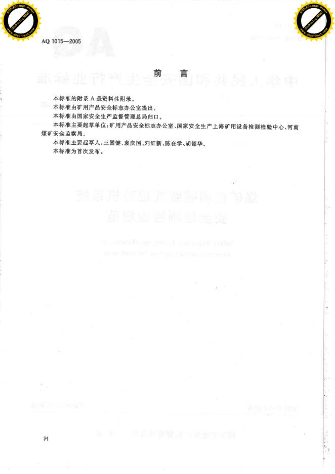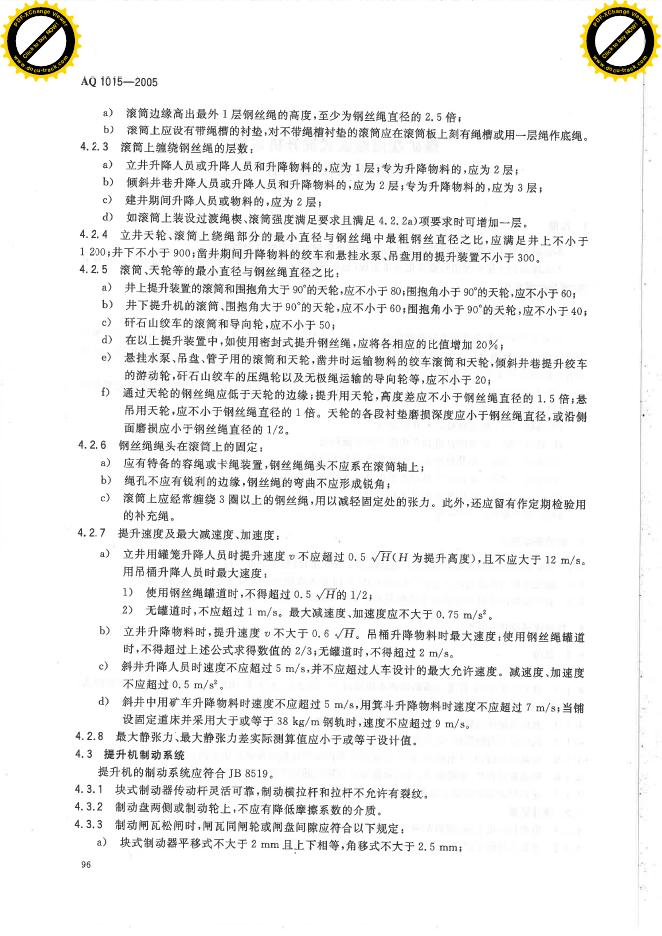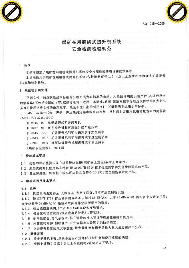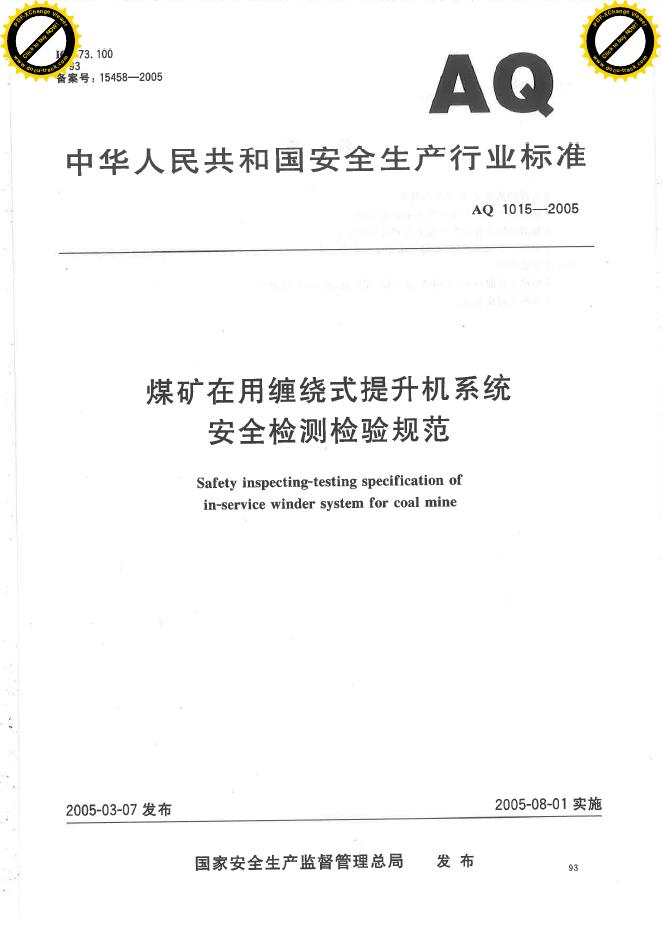 AQ/T 1015-2005 煤矿在用缠绕式提升机系统安全检测检验规范